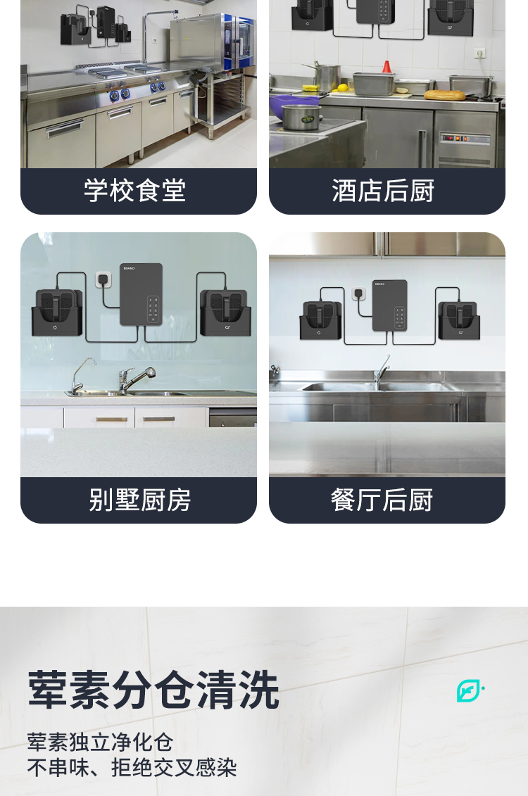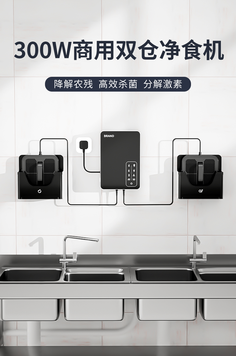 產品適用于企業飯堂、學校、酒店、別墅等,有效祛除細菌,能有效分解肉、魚、海鮮等食物中的激素、瘦肉精殺滅表面的細菌、病毒等微生物,預防食物中毒事件的發生。