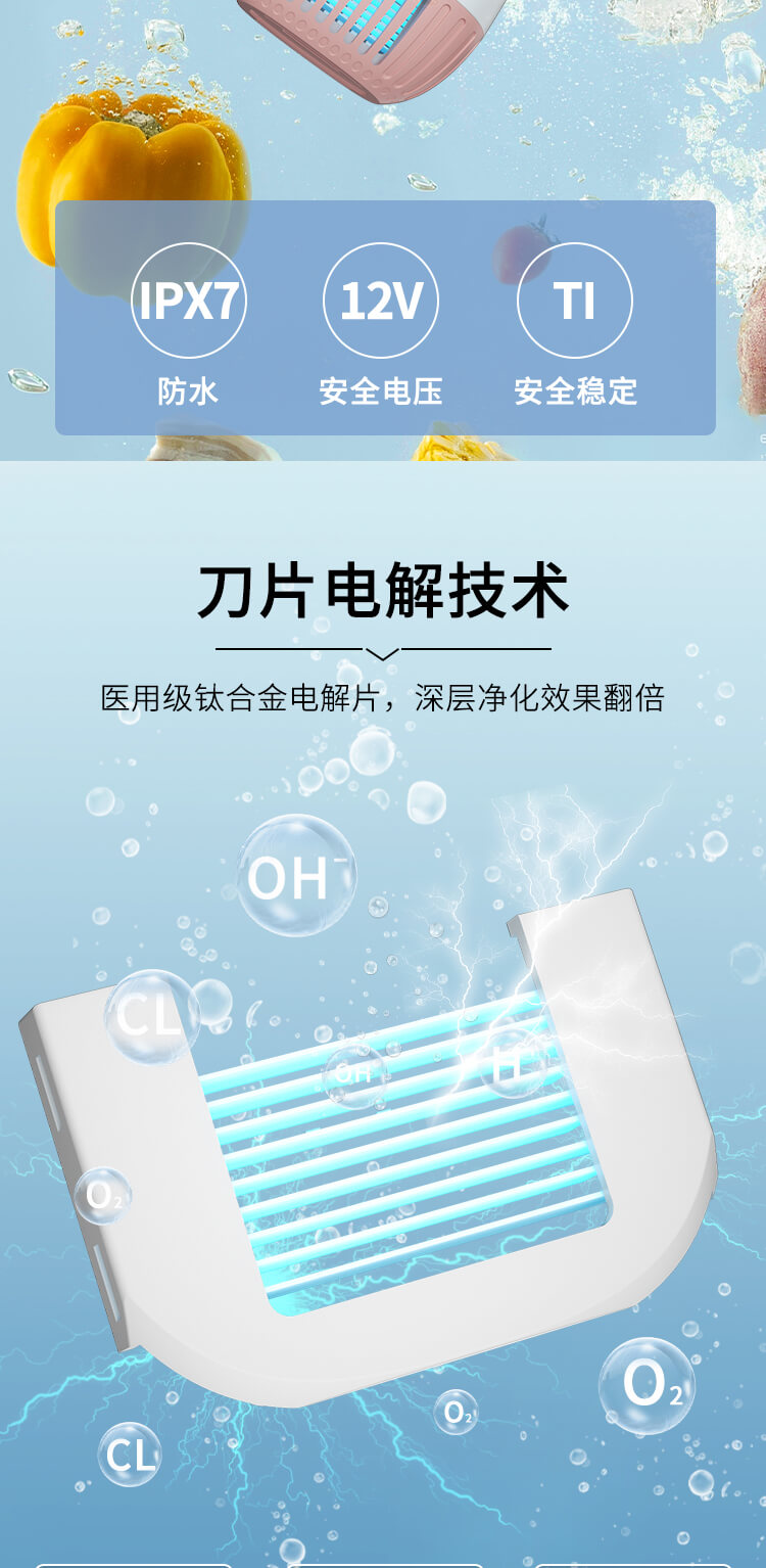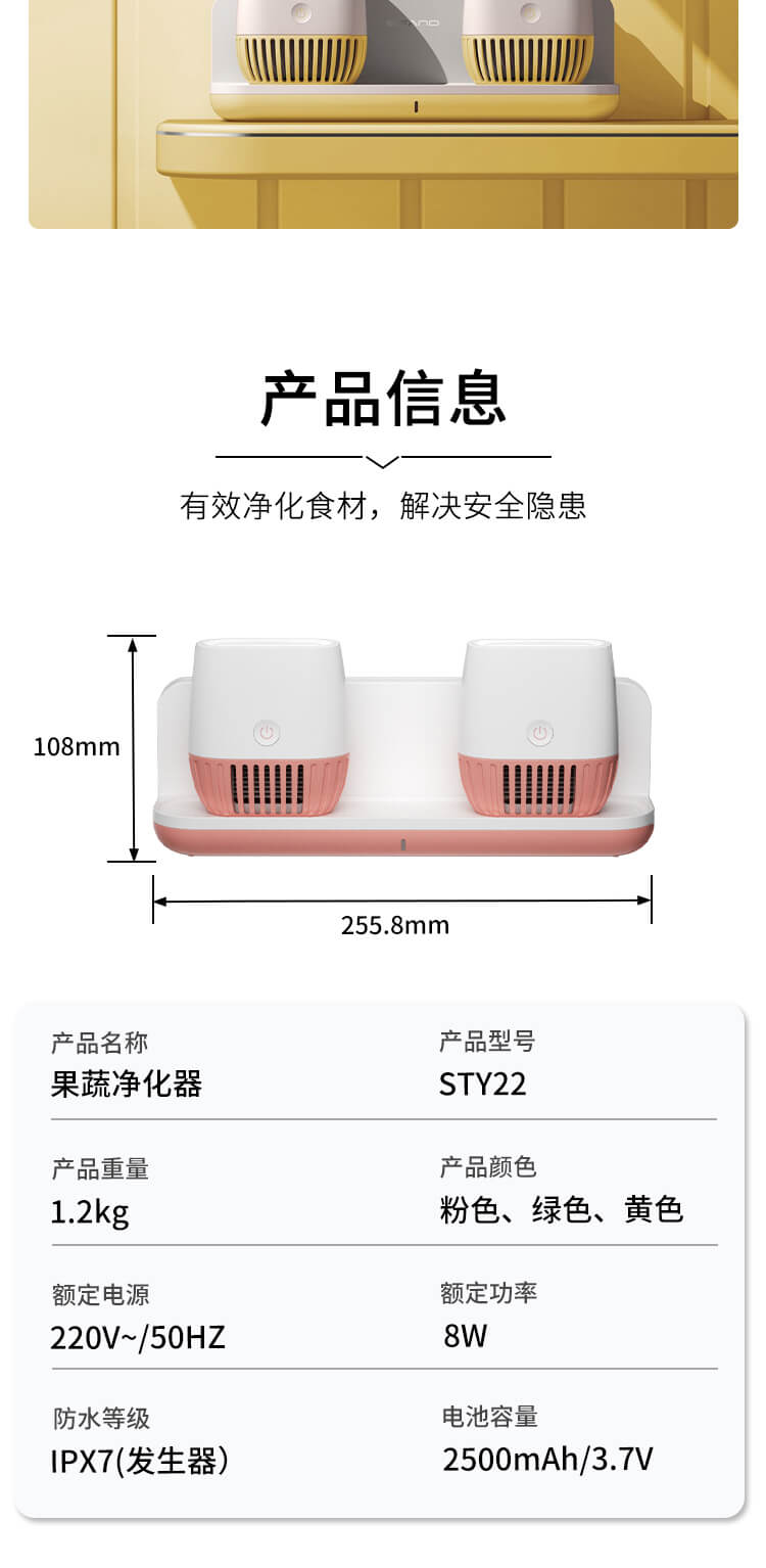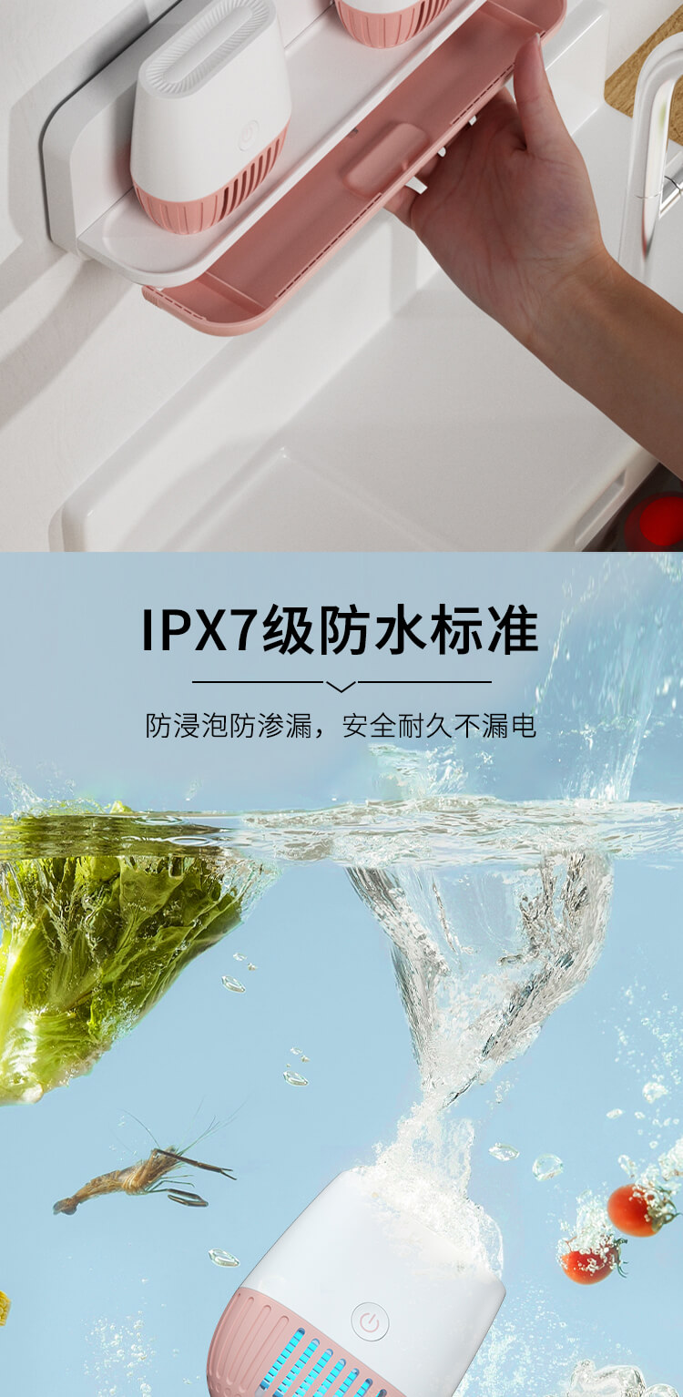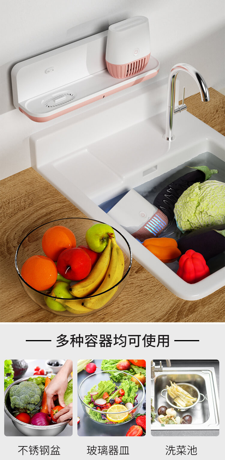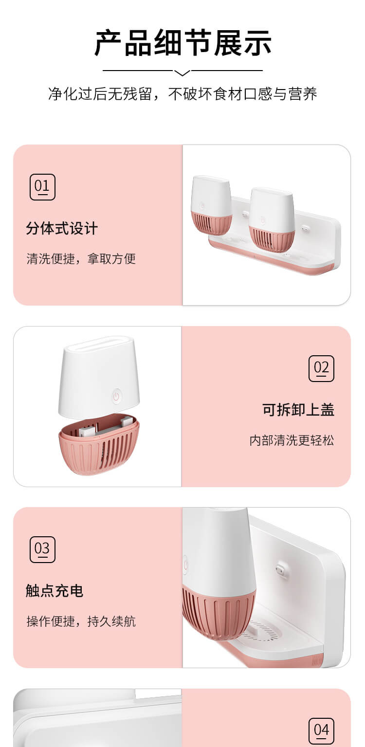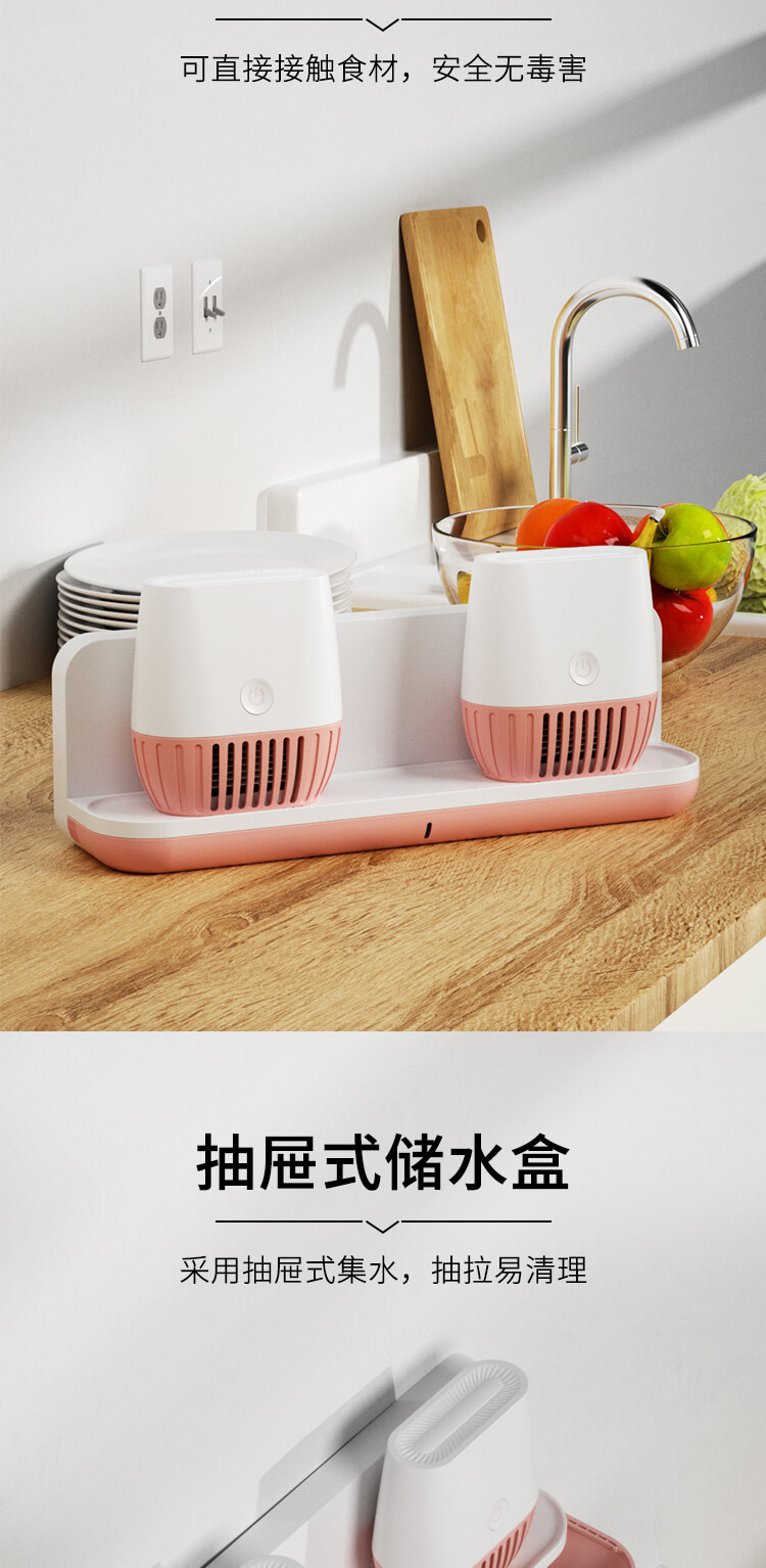 臺面壁掛雙用途,免打孔背膠設計,輕松掛在廚房任意角落,臺面放置小巧不占地方。無線雙倉設計,葷素雙凈同時啟動,專用果蔬、肉類點解發(fā)生器,避免交叉感染,雙凈同時啟動,省時更高效。